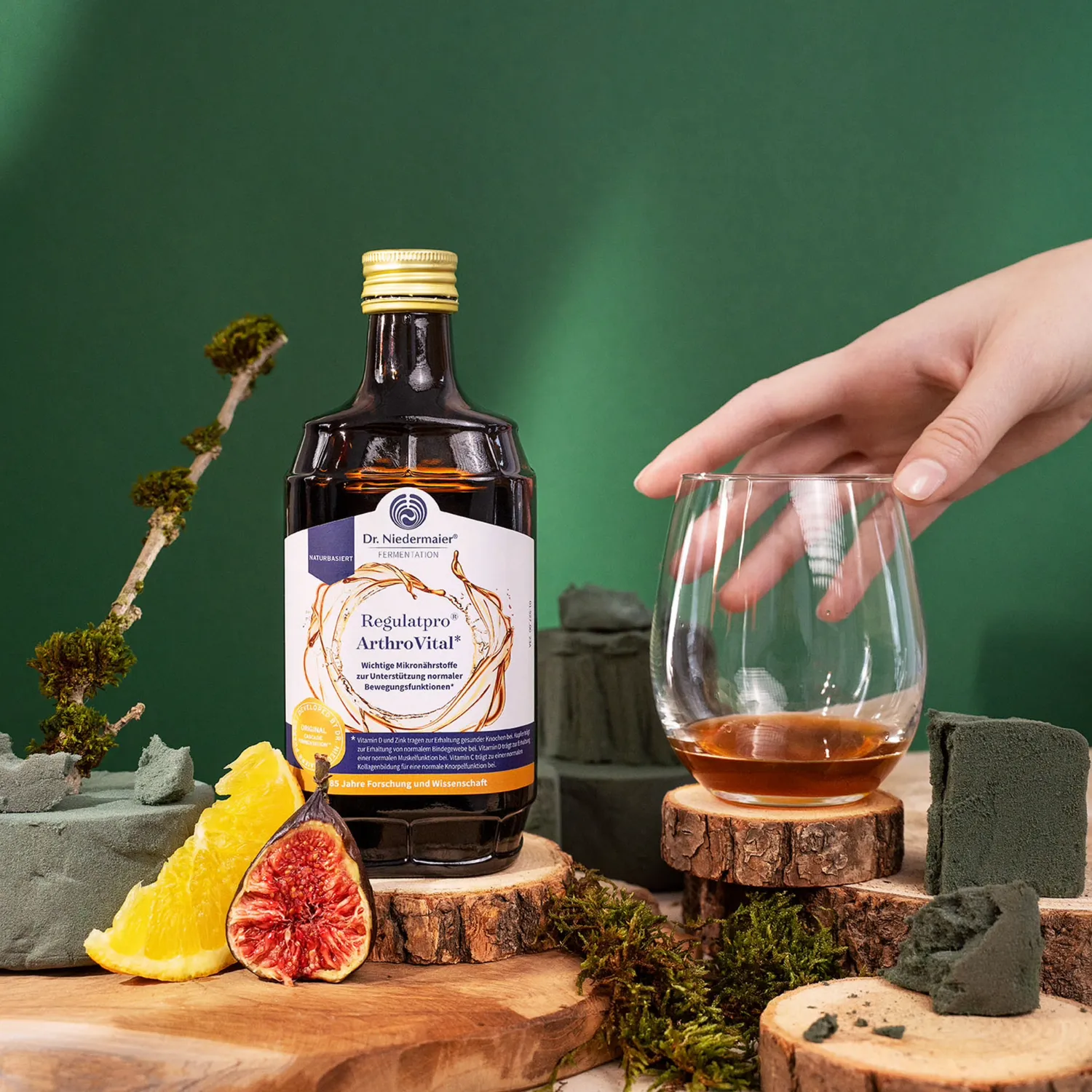 Regulatpro ® Arthro Vital je tekoče prehransko dopolnilo s fermentiranim Regulatessenz ® in posebej izbranimi vitalnimi snovmi ter vitamini in minerali za podporo mišicam, kostem in vezivnemu tkivu za normalno gibanje.